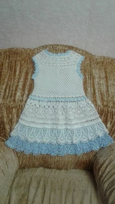 Всем доброго времени суток.Вот такое платьице заказала для своей малышки моя подруга.Пряжа хлопок.