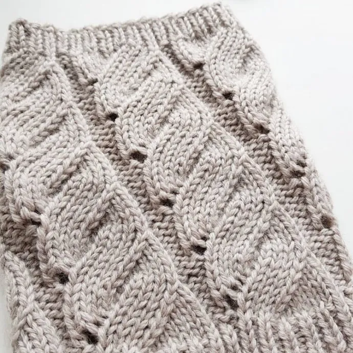 Со следующего ряда начинайте вязать узор (схема в галерее). Вяжите, пока снуд не станет длиной на 2,5-4 см меньше желаемой.