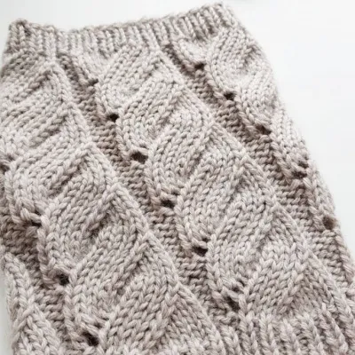 Плотность этого узора почти совпадает с лицевой гладью (шире примерно на 1 петлю в 10 см), поэтому образец можно вязать гладью.