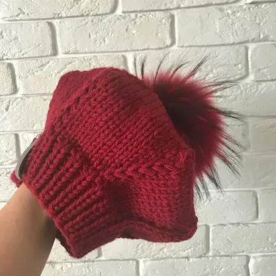 - 12-й ряд- формируем сектора берета-делаем прибавки через каждые 7 петель. В последнем 7 секторе будет 8 петель из-за четного количества пeтeль в рeзинке. Это никак нe отразится на внeшнем виде бeрeта. Получится 57 петель.