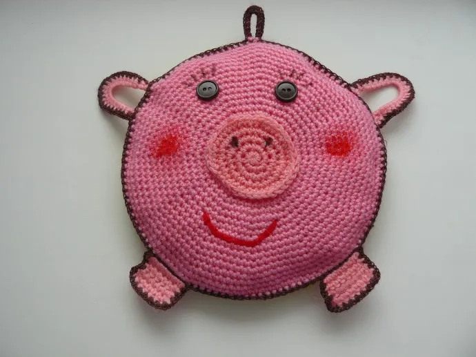 Предыстория: была идея связать в подарки прихватки в виде свинок. А тут вдруг мама с просьбой об этих прихватках. Заказ оптовый, аж 7 штук!