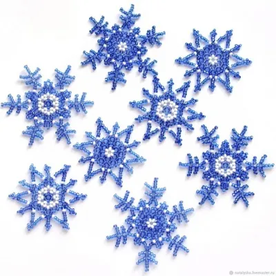 Бусинки и бисер (пусть даже не очень хорошего качества), стеклярус - все найдет себе применение в изготовлении таких милых снежинок! Всего несколько минут времени, немного усилий, леска или проволока (лучше серебристого цвета) и целая куча снежинок украсит Ваш дом, душу, настроение!