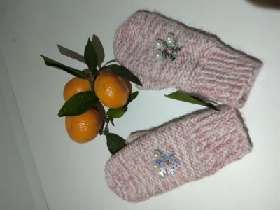 Вот такие варежки связались в подарок к новому году для девочки. Вязала в 2 нити: одна акрил, другая - 100% шерсть, ну и небольшое украшение в виде пайеток и бусинок.