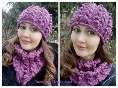 Шапочка и снуд с косами и шишками