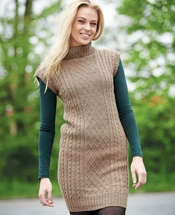Бежевое платье спицми