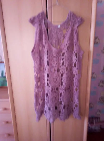 Туника связана крючком из акриловой пряжи. Нарядная, мягкая. Одев такую тунику Вы будете выглядеть привлекательно на отдыхе, поразите окружающих и побалуете себя