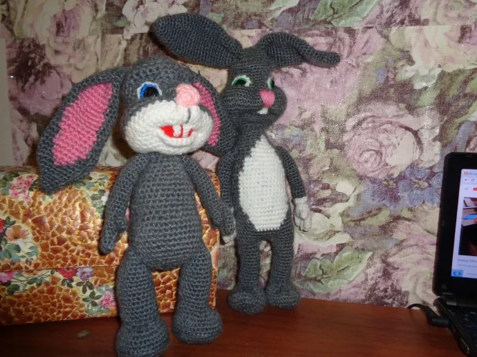 Добрый день.Скоро наступит год зайца. Заранее начала готовить подарки.Зайцы связаны из LaVita yarn Velur крючком №6.Использованы пластиковые суставы для крепления ручек и ножек.Рост от 28 до 30 см