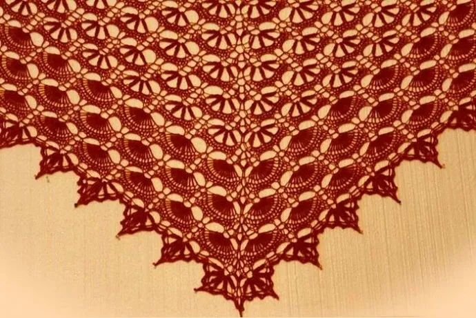 красивый узор! А я вообще люблю шали крючком вязать. В бордовом цвете, конечно, лучше смотрится.
