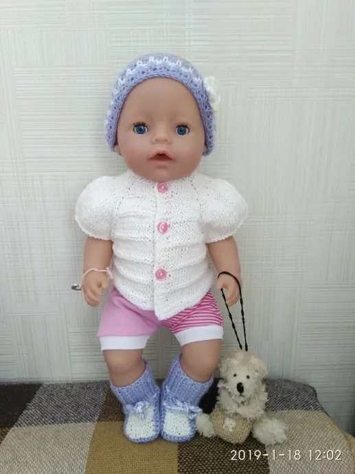 у меня похожий пупсик был, я его Гошей назвала. Тоже первые связанные носочки ему подарила
