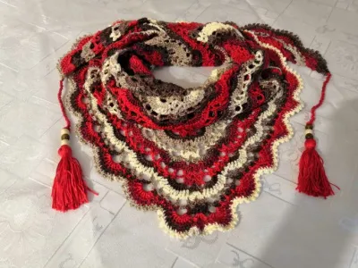 Добрый день, дорогие рукодельницы. Хочу представить Вашему вниманию мой первый бактус. Признаюсь честно, я в восторге от результата. Причин несколько, самая первая - это пряжа, я от нее просто без ума!!! Выписала в прошлом году для пробы, не знала на чем испробовать и вот испробовала на этом изделии. Во вторых цвет меня просто покорил,ниточка ровненькая, скрутка великолепная, вязать просто в удовольствие. Этот бактус будет скорее всего декоративной деталью моей одежды, тепла от него будет мало. Вот сейчас я думаю, почему я раньше не вязала такие красивые бактусы? Теперь в моем гардеробе их будет штук шесть. Связала за полтора дня не напрягаясь. Схему и фото пряжи обязательно добавлю. Ушло почти два мотка вместе с кисточками. Длина по верхней части 1м 15 см. Для меня этого достаточно, при желании можно сделать больше.