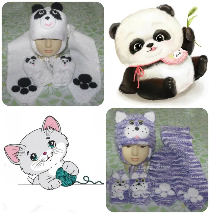 Всем здравствовать! Хочу показать ещё немного своих работ. Это шапочки, комплекты с шарфиками, варежками, пинетками. Очень забавно смотрятся на малышах :)! А какое удовольствие вязать этих милых зверюшек!!!