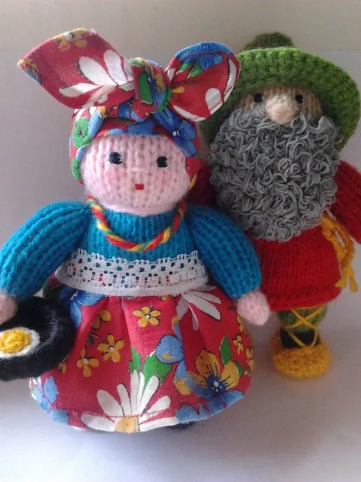 Классная парочка!!! Подружка очень хороша!!! А я своему Домовому волосы и бороду приваливала-это даже проще, чем делать из ниточек, хотя не напрасно потрудились-борода у вас знатная получмлась! А это мой Тихон — вязала хорошему другу на новоселье