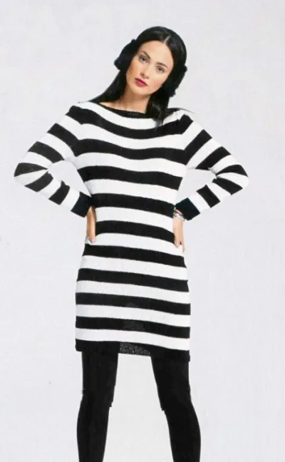 Внимание! Изделие вяжется в 2 нити!Платье в черно-белую полоску