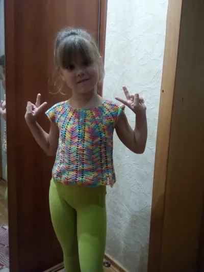 Я связала для младшей племяшки маечку из остатков пряжи coco print, крючок 2.