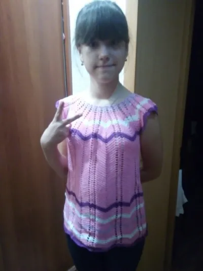 Эта маечка связана из остатков пряжи. Розовые - ирис, остальные - сосо, крючок 2.