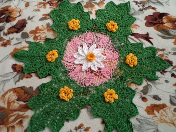 Вязала очень давно, размер не помню, но где-то сантиметров 50 в диаметре.