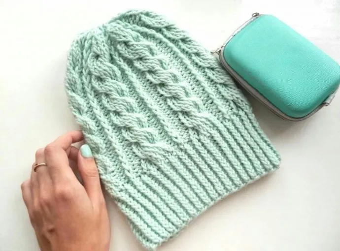 Мятная шапочка спицами