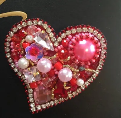Брошь из бисера «сердечко». Ручная работа.