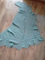 Очень нежно!!! Я тоже первую шаль вязала Харуни, только с двойной каймой — помучиться захотелось