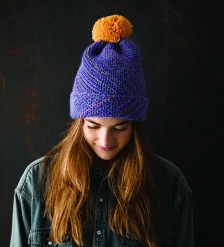 Тёплая шапочка, вязаная по диагонали - что-то новое!