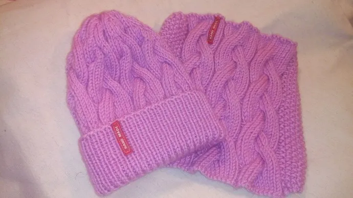 Вязаный комплект: шапочка и снуд.