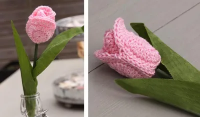 Неувядающий тюльпан хорошо смотрится как соло, так и в букете. Благодаря подробному мастер-классу связать его сможет даже новичок.
