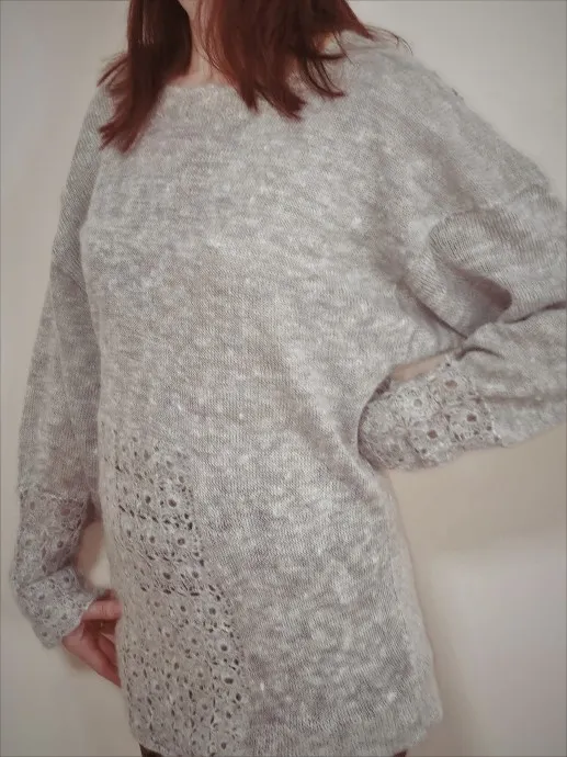 Ажур очень украсил пуловер! Со вкусом сделанная работа!