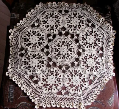 Дело в том, что я вязала эту салфетку месяца 2, она тоже большая 60 см. Один мотив — 15 см, и вязать ее долго со всеми обвязками, и много за нее конечно не возмешь. А просто жалко времени.
