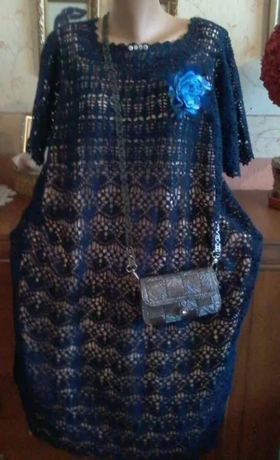 Здравствуйте всем!Показываю свое новое платье Связалось оно очень быстро,хоть размерчик мой все уже знают,всего за 15 дней!Наверное ниточки такие попались - подарок моей приятельницы, времен СССР!смотаны в клубочки,знаю только,что хлопок Схемы всем известные,не новые Сколько ушло ниточек не знаю,не взвешивала,крючок 1,5 Носиться будет с черным подкладом,а здесь просто чтобы рисунок был виден