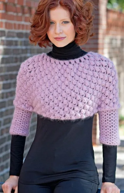 Болеро из нежнейшей смесовой пряжи из ангоры и альпаки маленькие вшитые рукава превращают в стильный короткий джемпер.
