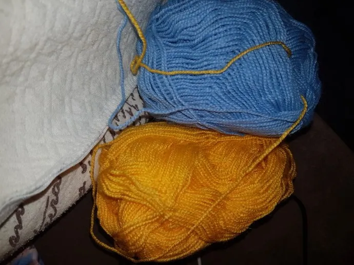 Связала из акрила рельефными столбиками с накидом. Совместила две нити: жёлтого и голубого цветов. Было бы интересно услышать ваше мнение, советы и пожелания, дорогие мастерицы