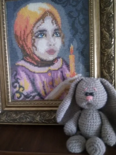 Сразу две работы; картина моя самая любимая, полностью вышита бисером, и зайка амигуруми