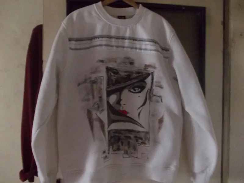Вот, реанимировала облитый красным вином свитшот. Пятна не отстирались, и тогда я решила его расписать. И расписала.