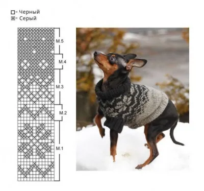 Практичный свитер с норвежскими этническими узорами для маленькой собачки, связанный спицами из теплой шерстяной пряжи, будет согревать маленького питомца в непогожие дни.