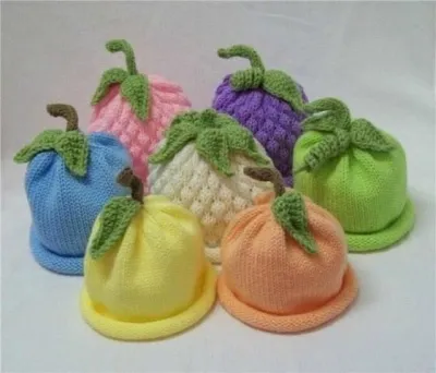 Вам потребуется: шапочка-ежевика - по 50 г лиловой, фиолетовой и зелёной пряжи (мериносовая шерсть, 160 м/50 г), набор чулочных спиц № 4;
