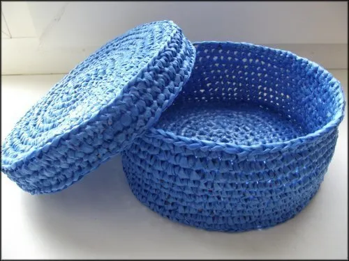 Этим способом можно вязать корзины любого размера и формы, а цвет пакетов тоже можно подобрать на ваш вкус, сейчас в продаже много пакетов разных цветов, для некоторых мастериц, которые увлекаются такого рода рукоделием это клад.