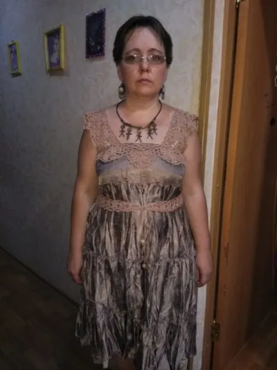 У меня была юбка, которую я почти не носила. Я решила ее переделать в платье. Я связала ленточным кружевом верхнюю часть и пришила к юбке. Еще связала пояс. Нитки сосо, крючок №2. Я специально не гладила юбку, ткань быстро мнется, и не видно, глаженая она или нет. Так даже интереснее.