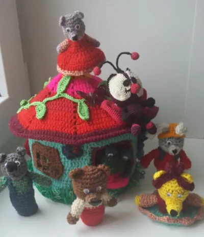 Девочки всем привет! Не смотря на свою занятость, по порьбе приятельницы, подрядилась я на вязание кукольного театра. Театр для детского сада к утреннику. И вот что у меня вышло.Остатков пряжи много, так что с этим проблем не было. Всем спасибо за внимание к моим работам