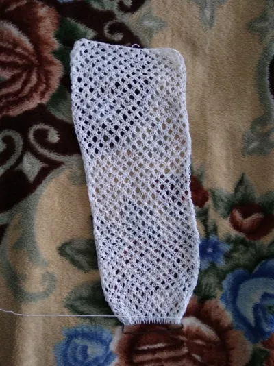 Набрала 35 петель + 4 кромочные. Связала прямоугольную полоску узором "Сеточка с перекидами"