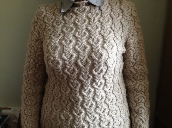 Мой первый свитер. Вязала на круговых спицах 3,5 и 4,5 (основное полотно). Узор из книги "250 японских узоров спицами" Хитоми Шида. Длина рукава 28 см до подмышки, длина туловища -&n...