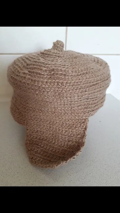 Шапочку в форме буденовки хотела сделать, но что-то пошло не так.