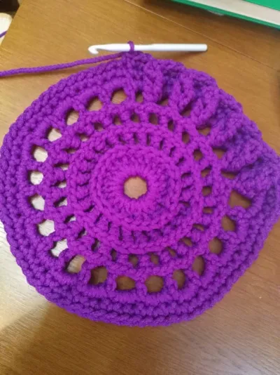 Начала новый проект. Ковер в комнату дочке, который она выбрала и заказала мне. Цвет выбрала дочка. Хотя сейчас мы очень любим все оттенки фиолетового и сиреневого и еще желтый цвет. Вот такая цветовая гамма у моей доченьки на сегодняшний день. Извините что выкладываю незаконченную работу, но хочется услышать мнение или возможно советы уже опытных вязальщиц. Вот я решила для себя освоить вязание из шнура. Очень нравится но пальцы побаливают. Работа идет не быстро, т.к. вяжу по вечерам пока делаем уроки или по утрам когда пью кофе)), а иногда переключаюсь на другую работу. Выкладываю начало работы. Когда закончу выложу всю. Но в проекте уже еще 2 ковра.