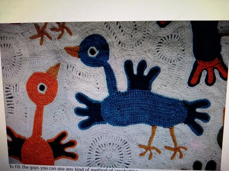Вот, птичка готова, связанных птичек ( скрамблей) раскладываем произвольно на поле вашего вязания и промежутки заполняем столбиками без накида.