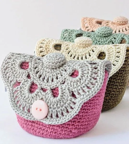 Чтобы связать такую косметичку сначала связать кольцо из ВП, обвязать СБН, а потом вязать круг — это будет дно косметички, а затем вязать верхнюю часть, уже без прибавлений.