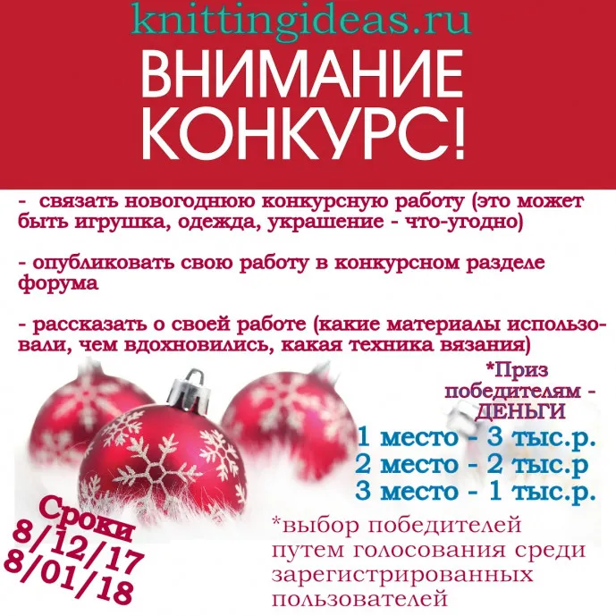- Опубликовать свою работу в специальном разделе форума "Новогодние вязалки 2018"