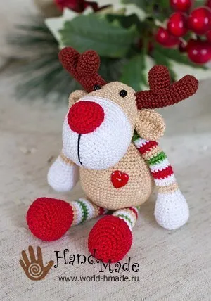 Очень шикарный олень!Игрушки никогда не вязала, но Рудольфа захотелось связать.