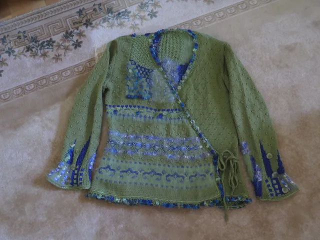 Задумала эту работу очень давно, собрала все нитки и начала собираться с духом. Эта модель из журнала Ирэн, когда он только-только у нас появился и был очень интересным. Начала вязать и выяснилось, что за это время я поправилась и основной пряжи не хватает, хуже того -ее перестали производить. К счастью, я к тому времени уже вовсю освоила интернет на предмет закупки всего рукодельного из всех уголков света. Нашла-таки пару необходимых моточков в каком-то крошечном магазинчике на другом конце света... Теперь уж не связать было неприлично. На фото есть изнанка - для меня очень важно, чтобы она была максимально "чистая" по исполнению