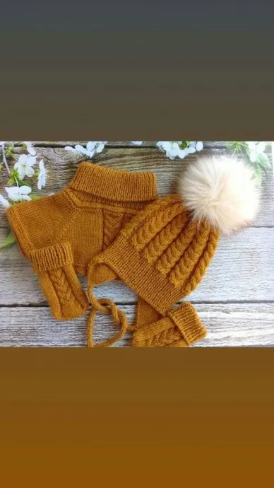 Прекрасный комплект! Девочки, а нет ли вариантов вязания детских шапочек спицами таких, чтобы шапочка не лезла на глаза и ее не приходилось закалывать брошками и т. п. вверху или сзади?