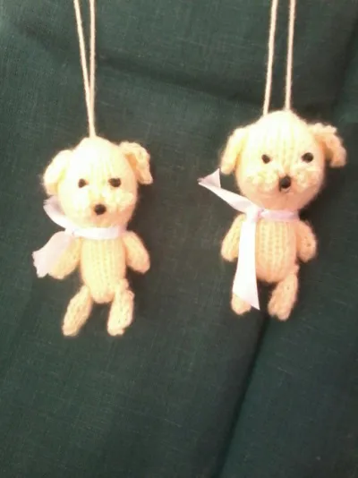 Маленькие собачки, связаны на 5 спицах их тонкой пряжи. Размер 5 см. Безопасные и долговечные игрушки для ёлки. Можно использовать как брелоки. Замечательные новогодние сувениры и игрушки.