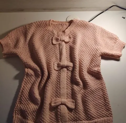 Здравствуйте, я ещё новенькая у вас, поэтому не учла всё. Пряжа хлопок с вискозой, свзано спицами жемчужным узором, или по другому ,, рис,, планка вяжется и в процессе вязания привязывается к полочкам. Остальное по фото понятно. Будут вопросы, обращайтесь.